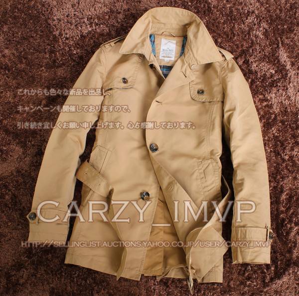 F01新品!SELECTED スプリング メンズ175→M相当 トレンチコート/カーキジャケットhtm hvi 取置10日!複数購入、同梱発送600円だけ